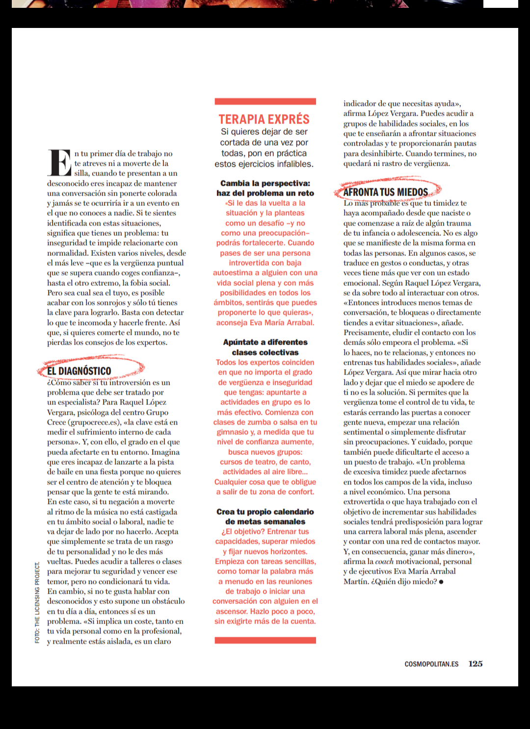 - «Cómo vencer la timidez»: Reportaje publicado en el número de enero de 2018.